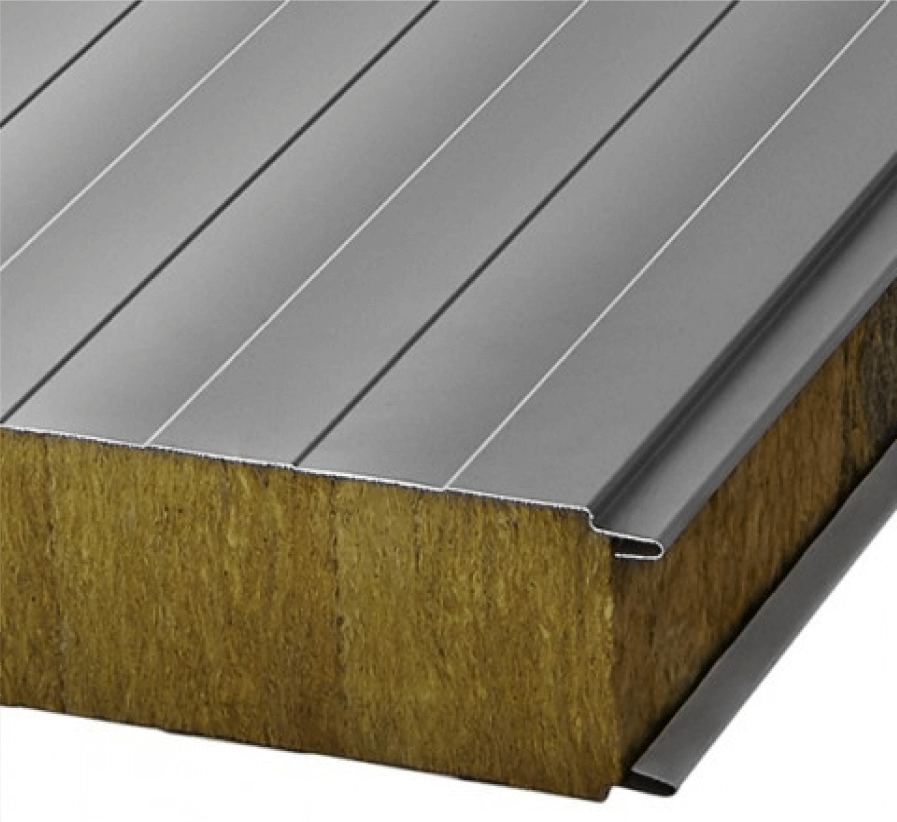 У будівлях з підвищеними вимогами до пожежної безпеки використовуються сендвіч-панелі з наповнювачем із мінеральної вати (MW), яка складається з тонких, діаметром 5-7 мк базальтових волокон, орієнтованих переважно горизонтально і скріплених